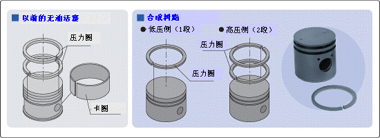| 使用此合成树脂活塞,就可无需使用以往活塞必须装备的卡圈,解决了能够导致空压机烧损、 | |||||||||||||||||